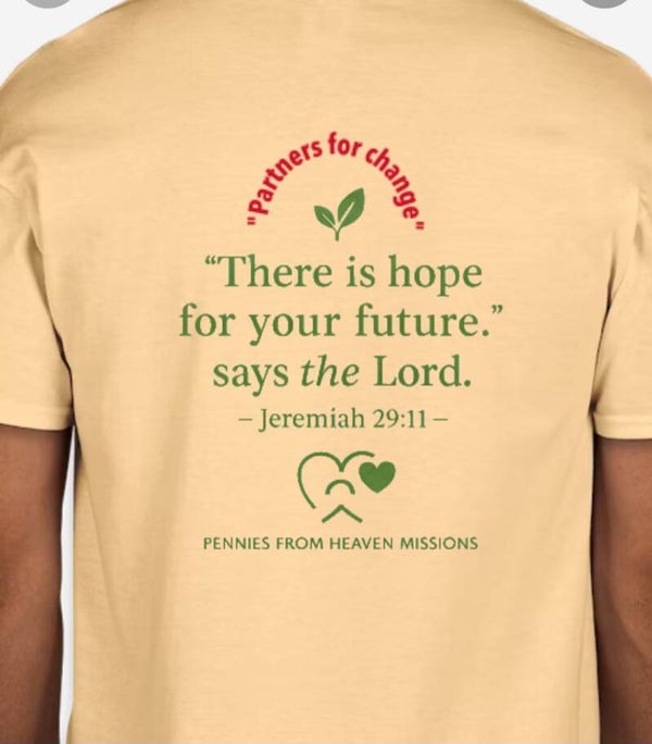 You can Support our mission by purchasing a t-shirt. These funds will help sponsor school fees, food, and clothing for orphans.